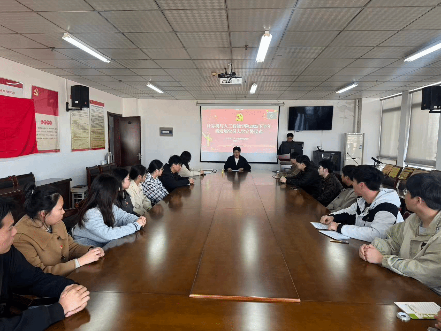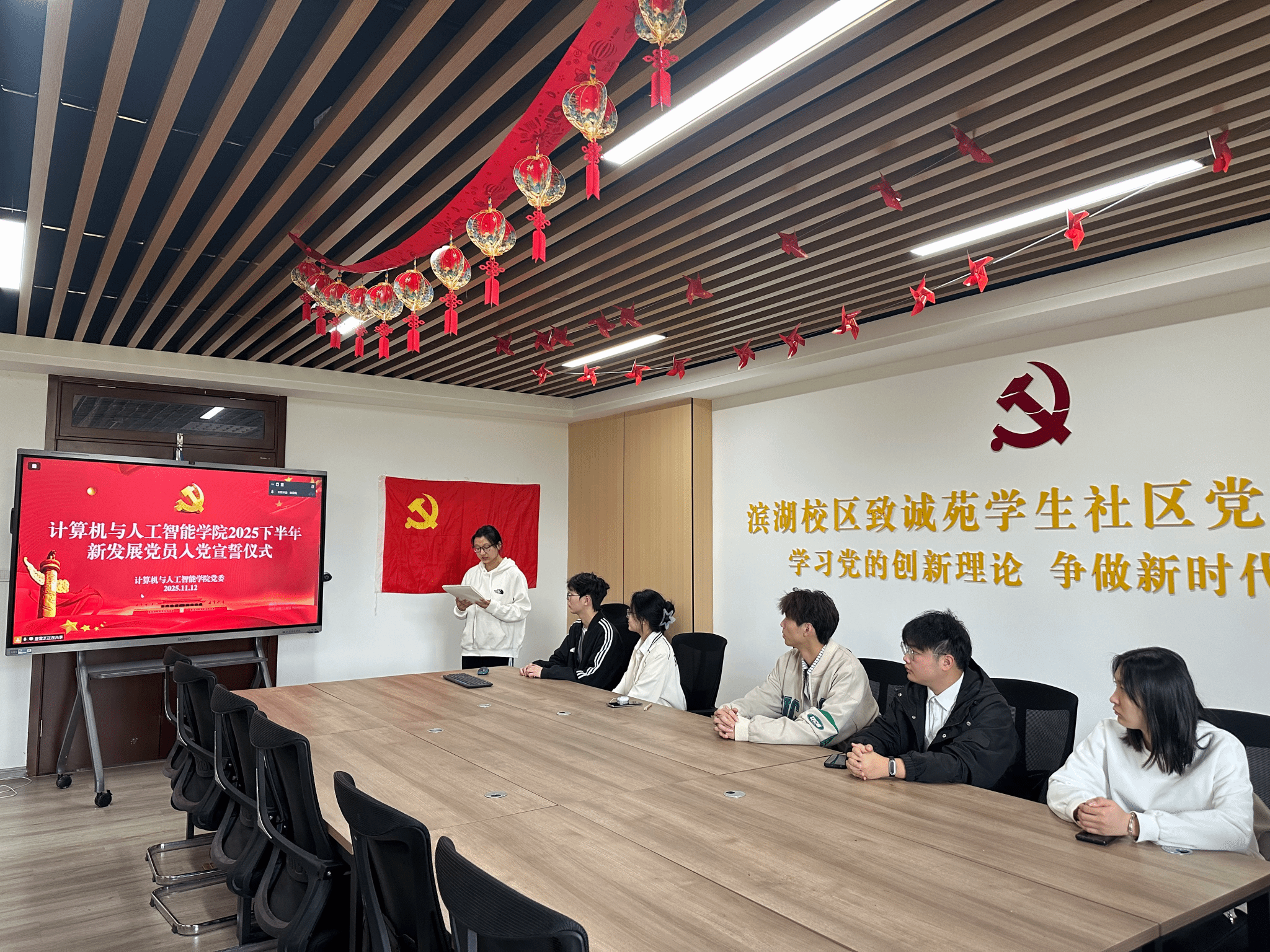 为进一步强化党员政治意识,增强党员责任感和使命感,11月12日,15vip太阳集团官网在行知楼1302会议室和滨湖校区一站式社区同步举行2025年度下半年新党员入党宣誓仪式。各员工党支部书记、全体党员出席本次宣誓仪式。