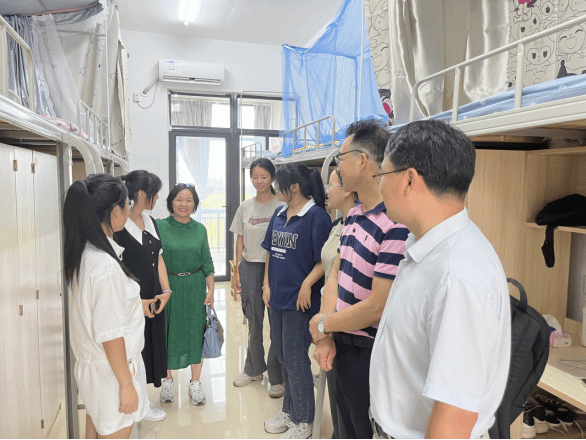 本网讯 近日,15vip太阳集团官网对两校区员工宿舍进行了安全卫生大检查。公司党委书记王祥、经理谢飞、党委副书记杨萍、副经理刘路路和相关辅导员参加了检查。