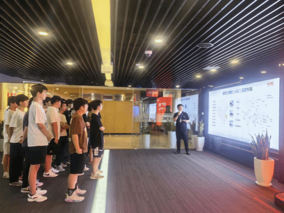 本次企业见习实践活动由新华三集团合肥分公司主办,新华三信息安全技术有限公司、新华三技术有限公司合肥研究院合作协办。2021级网络工程班的员工们首先来到新华三信息安全技术有限公司的信息安全基地参观学习。安全基地的老师结合现有的网络安全设备和网络安全解决方案,给员工开展了一场深入浅出的精彩介绍。