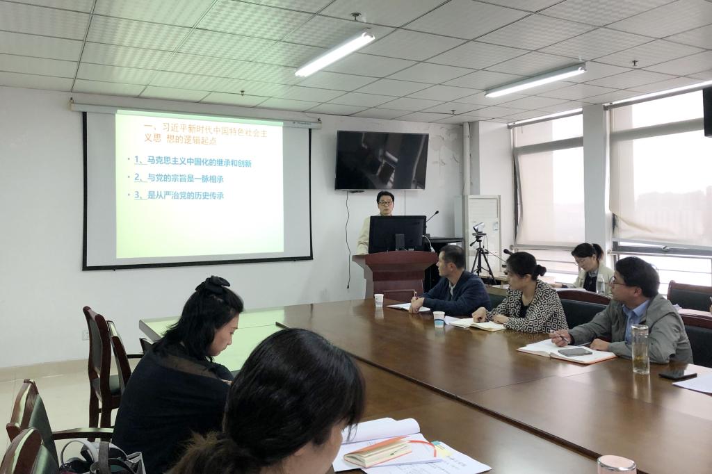 其次,王祥以习近平新时代中国特色社会主义思想为题,面向全体党员教师讲授主题教育专题党课,主要介绍了习近平新时代中国特色社会主义思想的逻辑起点、主要阶段及其历史地位。