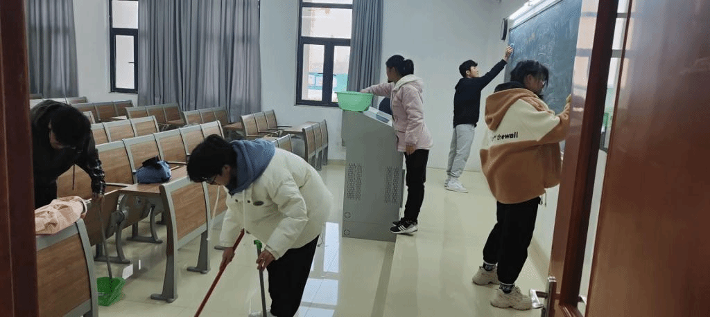 本学期劳动教育实践活动的主要内容包括教室劳动、宿舍劳动、家庭劳动、校园劳动、安全保卫劳动等。各班同学按照学院要求合理分配时间,张贴班级值班日志和寝室劳动公约,定期打扫本班包保的教室和宿舍卫生,利用节假日在家的时间帮助家人分担家务。还在各部门老师的安排和带领下,积极走进校园广场清扫落叶和垃圾,走进图书馆擦拭书架、整理书籍,走进实验室机房清理垃圾等等,认真完成每一次劳动任务,并在学期结束时撰写了个人劳动教育实践活动总结。
