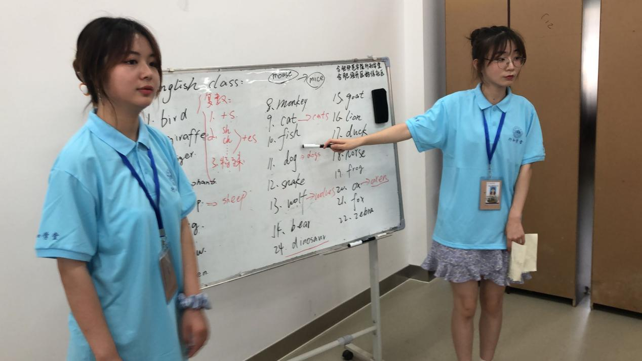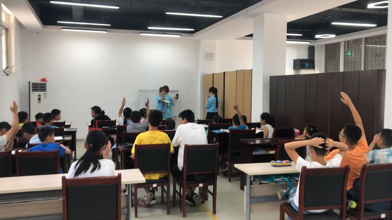 为加强小学员英语学习兴趣与能力,计算机学院始信社区行知学堂于7月12日开展“LSRW四步走”趣味英语教学。.)。