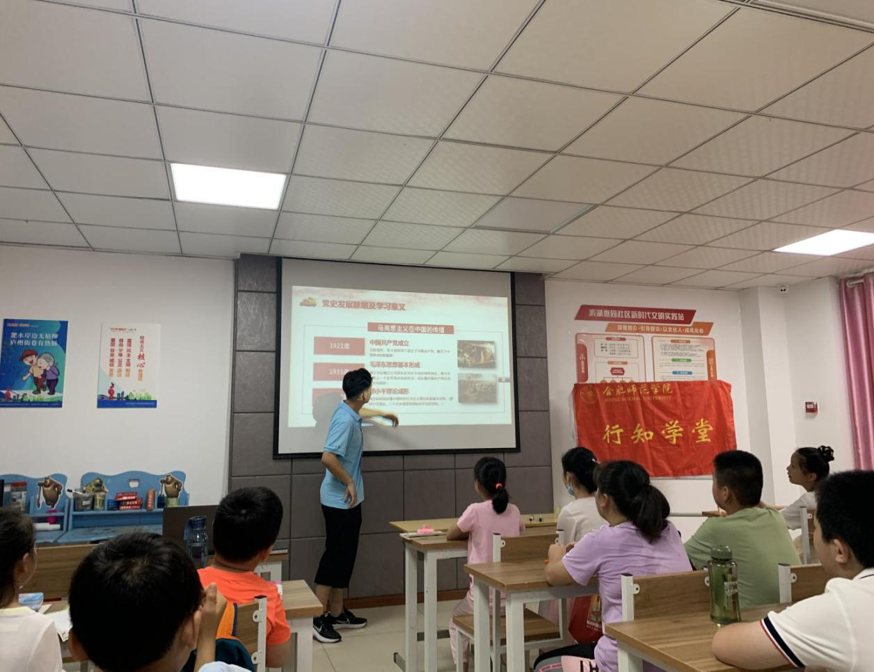 7月13日,计算机学院惠园社区行知学堂开展“不忘初心、牢记使命”主题教育,意在让小学员们增强对基本的党史知识的了解,体会中国共产党一百年来走过的艰辛与辉煌。小先生李捷进行党史教育的授课。