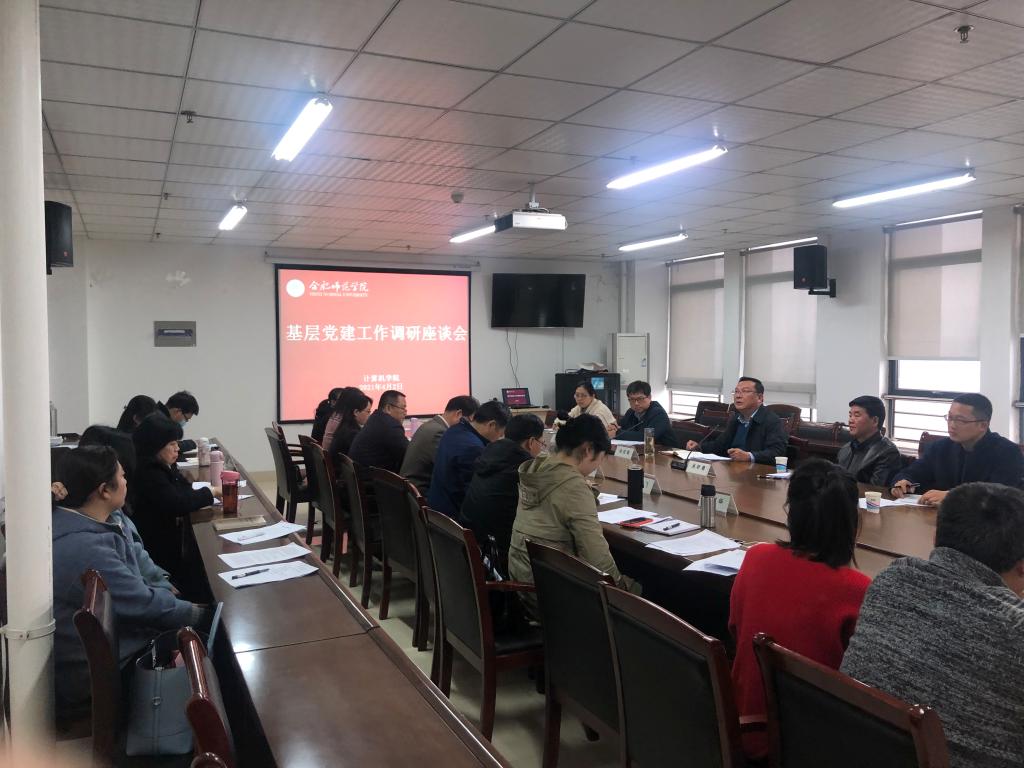 首先王祥书记对照调研提纲逐一汇报计算机公司党建情况,党委委员和支部书记分别就党建和事业发展提出了意见建议。随后公司党委副书记吴昕春就学院两项会议议事制度落实情况、党支部优化设置、党员发展、创新党员教育、标杆院系、样板支部等示范项目等工作容给予充分认可。最后公司党委书记徐成钢肯定了计算机公司党建和事业发展取得的成绩,并提出四点希望:一是强化理论武装,筑牢思想根基;二是强化组织合力,夯实基层基础;三是强化攻坚合力,压实工作责任;四是强化党建引领,提升发展质量。