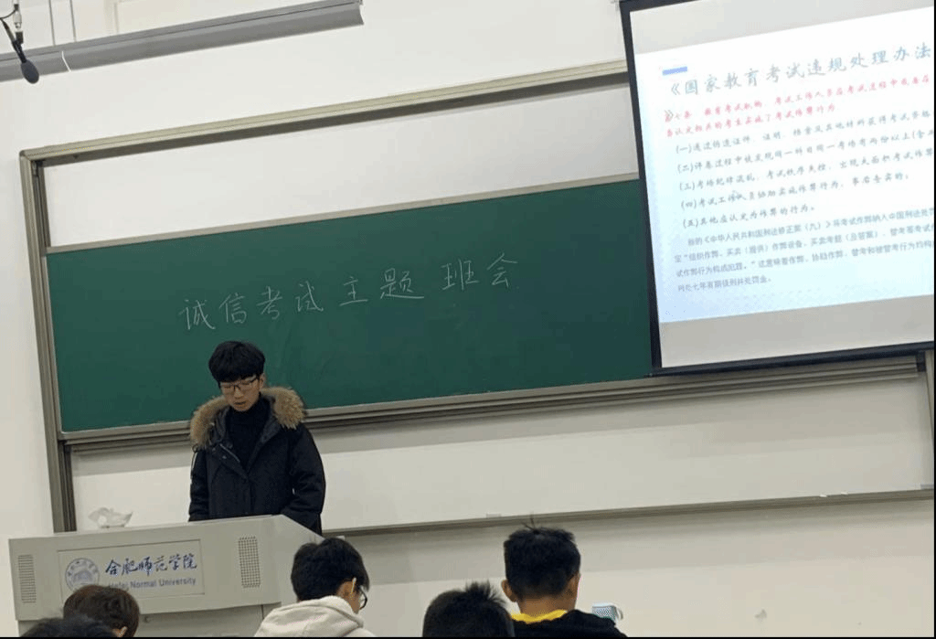 本次诚信考试暨冬季安全教育主题班会使同学们对疫情返校后的第一次线下期末考试有了严肃的认知,有利于提高大家的诚信考试意识,也对冬季安全知识有了更深刻的了解,为营造积极有序的期末氛围打下了基础。(计算机学院)