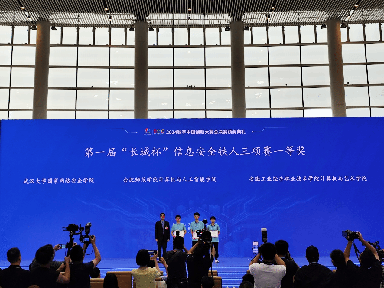 第七届数字中国建设峰会5月24日在福建省福州市开幕,中共中央政治局常委、国务院副总理丁薛祥出席开幕式并发表主旨讲话。作为数字中国建设峰会的重要赛事,第一届“长城杯”信息安全铁人三项赛决赛得到国家数据局、福州市委、市政府的大力支持,在峰会期间成功举办。本次大赛以“网络智能防御,开启数字安全新时代”为主题,旨在打造高校网络安全权威赛事,聚焦培养卓越网络安全专业人才,促进网络安全产业持续发展。大赛展现了一场智力与技术的巅峰对决,来自86所高校400余名师生会师决赛。15vip太阳集团官网代表队经过初赛和半决赛的层层筛选,参加了本次总决赛。