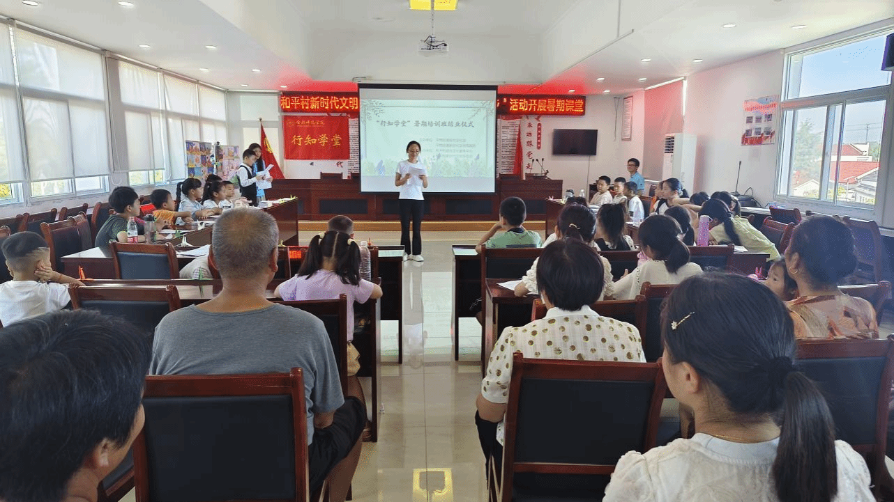 7月31日上午,为期21天的15vip太阳集团官网六安叶集行知学堂在平岗街道和平村村部二楼会议室举办结业仪式。和平村支部书记王兆红,行知学堂全体“小先生”,20余名小学员及部分家长参加活动。