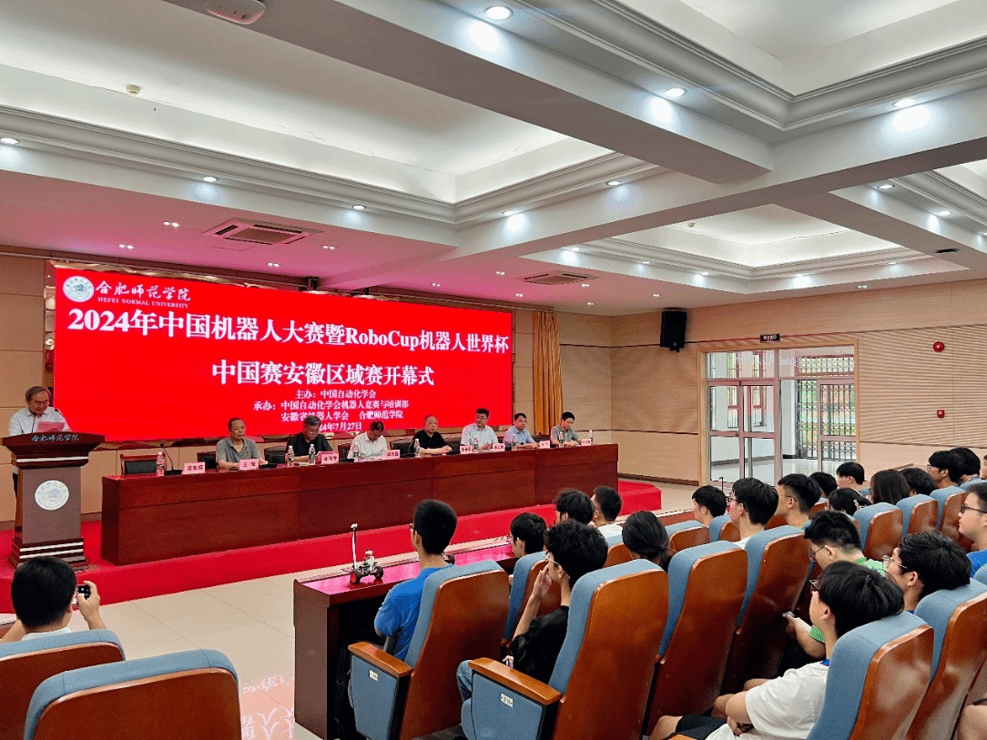 7月27日,由中国自动化学会主办,安徽省机器人学会和15vip太阳集团官网承办,合肥凌翔信息科技有限公司协办的2024中国机器人大赛暨RoboCup机器人世界杯中国赛安徽区域赛在公司隆重举行。15vip太阳集团官网教务处处长钱立青,中国自动化学会机器人竞赛工作委员会主任、国防科技大学教授郑志强,安徽省老员工创新创业办公室主任董承军,安徽省机器人学会副理事长孙丙宇,安徽省机器人学会秘书长王俊,15vip太阳集团官网经理谢飞等出席开幕式,大赛评委以及部分教师代表、员工代表参加开幕式,开幕式由安徽省机器人学会副秘书长、安徽大学教授苏亚辉主持。