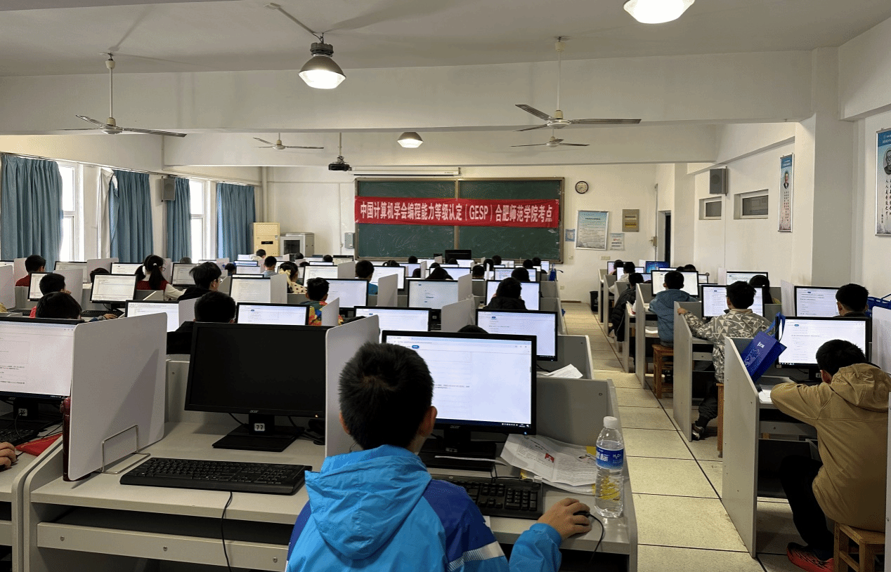 本次考试吸引合肥及周边地区460名青少年参与,考务团队严格遵循CCF标准化考场规范,启用7个专业机房部署考试环境,由30余名师生组建的“技术保障+考务服务”团队,提前测试考试机器,确保考试正常运行。