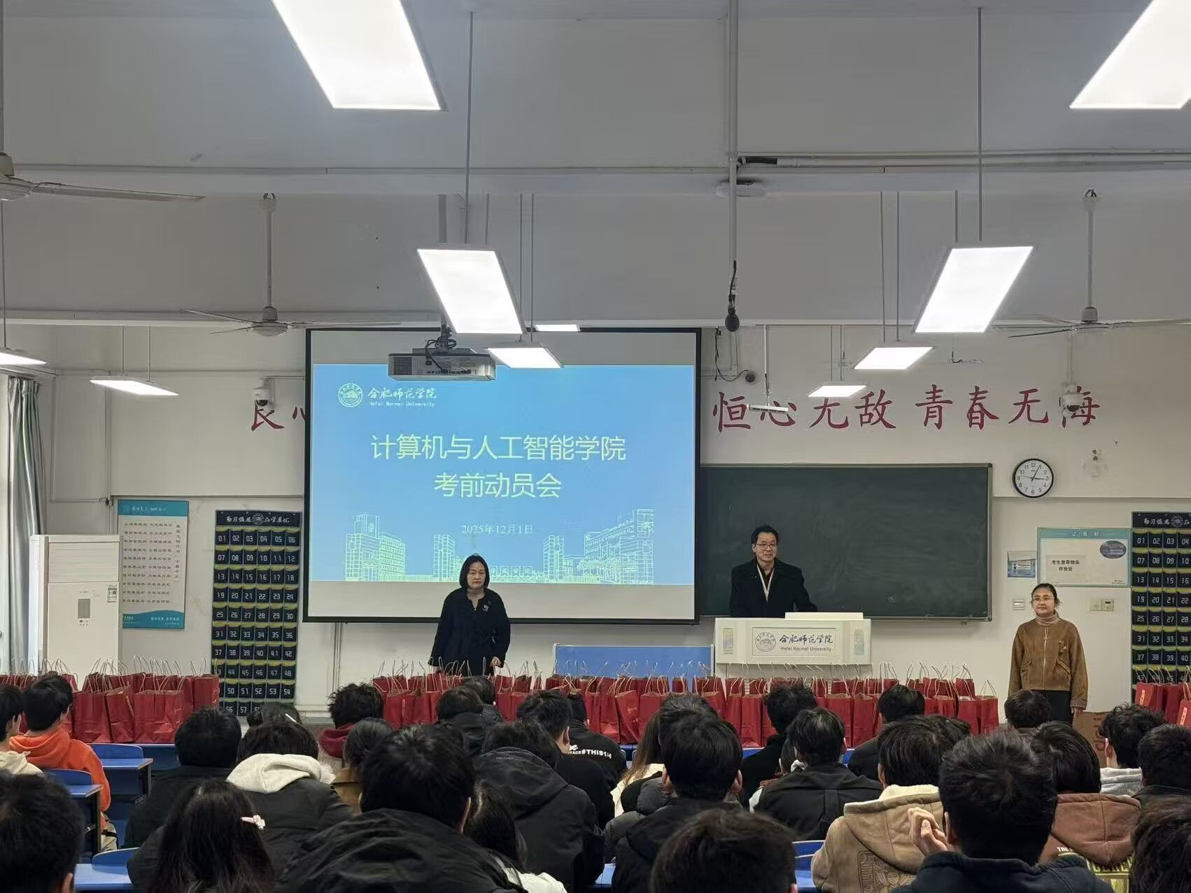 2025年12月1日下午,15vip太阳集团官网在逸夫楼A206举办了2026年全国硕士研究生招生考试考前动员会。公司党委书记王祥、副书记杨萍、副经理刘路路、毕业班辅导员及考研学子参加了此次动员会。