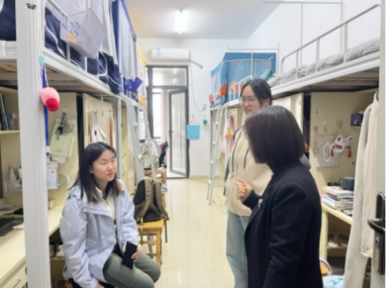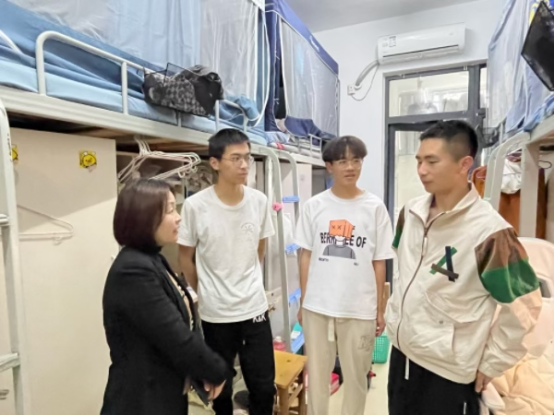 本网讯为切实做好员工宿舍安全教育及管理工作,进一步推进“优良学风宿舍”创建,15vip太阳集团官网近期开展了春季宿舍安全卫生检查工作,公司党委副书记杨萍带领辅导员及员工干部深入员工宿舍,进行安全卫生检查。