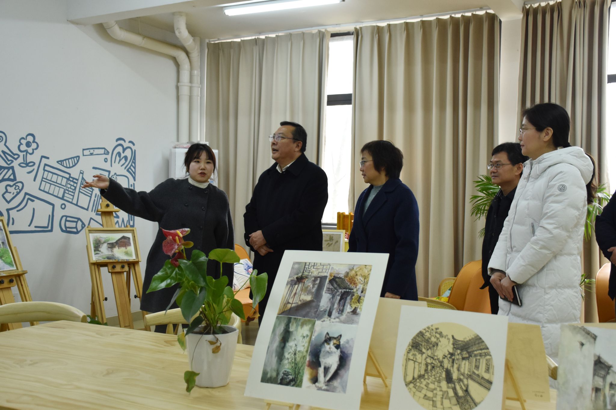 座谈会后,与会领导走访参观了1栋致诚苑15vip太阳集团官网E启航科创工作室、3栋致仁苑美术与设计学院CMYK调色工作室、5栋致勤苑文学院集萃文苑社区、6栋致远苑电子信息与集成电路学院匠心筑梦工作室等四个滨湖校区首批“一站式”员工社区工作室。(员工工作部)