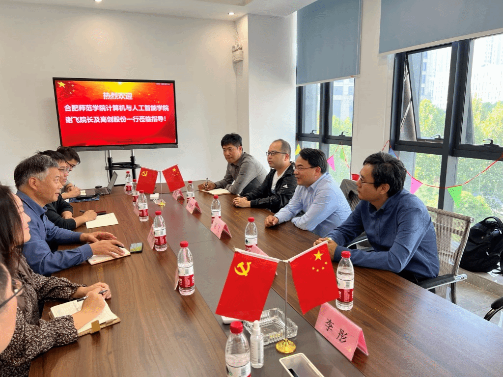 最后一站谢飞一行来到合肥综合性国家科学中心人工智能研究院,与在研究院工作和实习的合师学子进行了交流,了解同学们的工作和实习情况,鼓励大家在人工智能研究院这样的高水平平台展现合师学子的风采。同时,谢飞和研究院智慧教育实验室负责人就教育大模型等研究方向进行了技术探讨,确定了合作的方向。